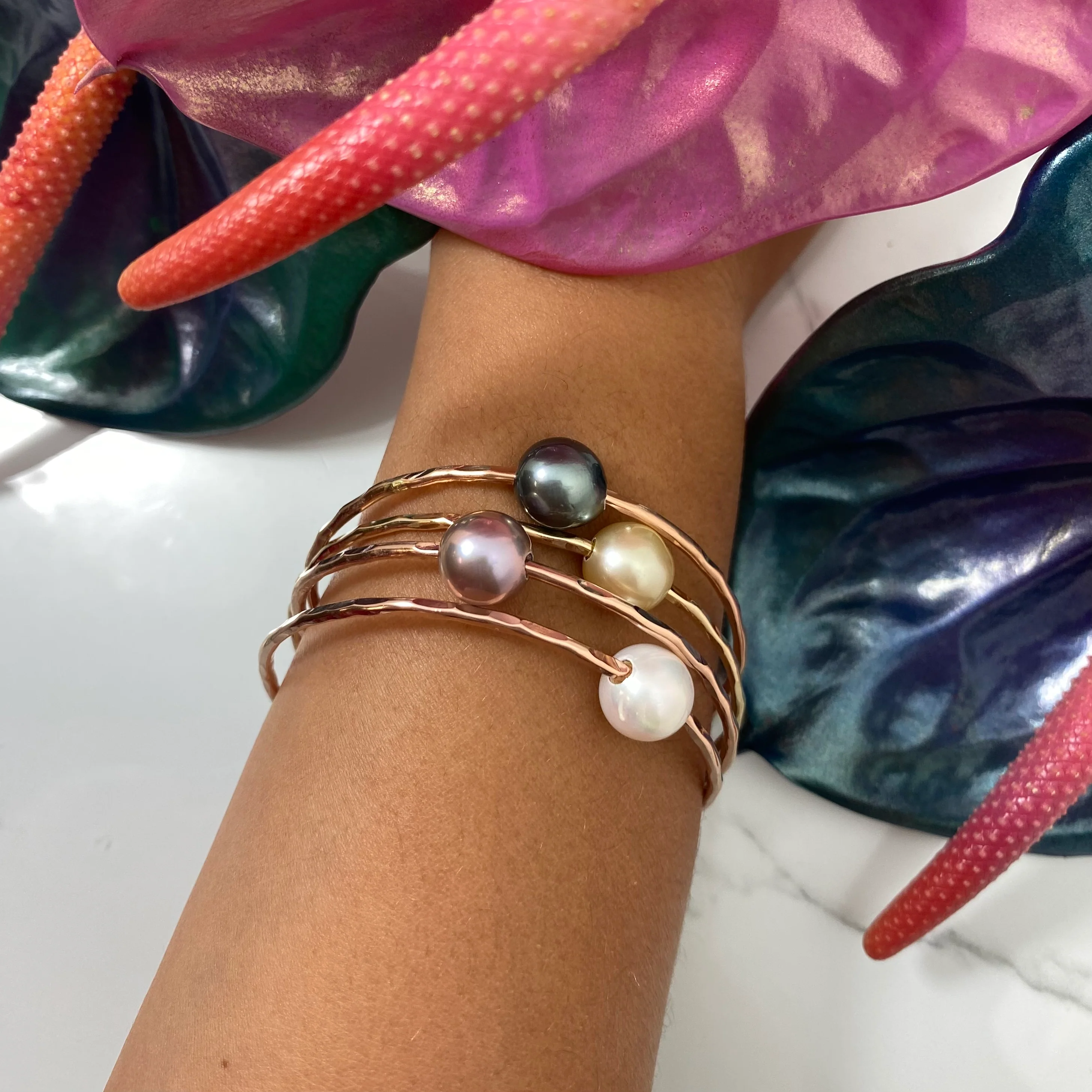 - Pearl floats freely on the bangle